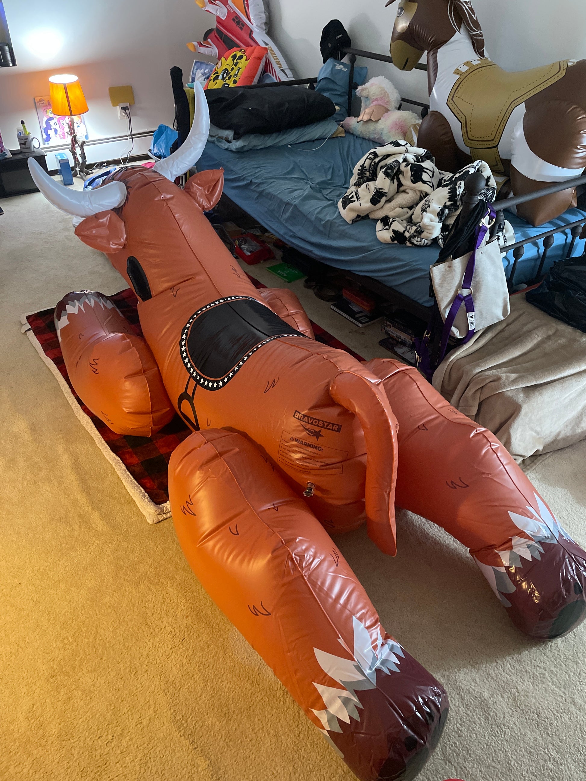 2024 inflatable bravostar bull. Soft material, nice design like the hp flausi, single chamber. 1 valve, top off type with black top and one plastic ring in the nose of the bull.