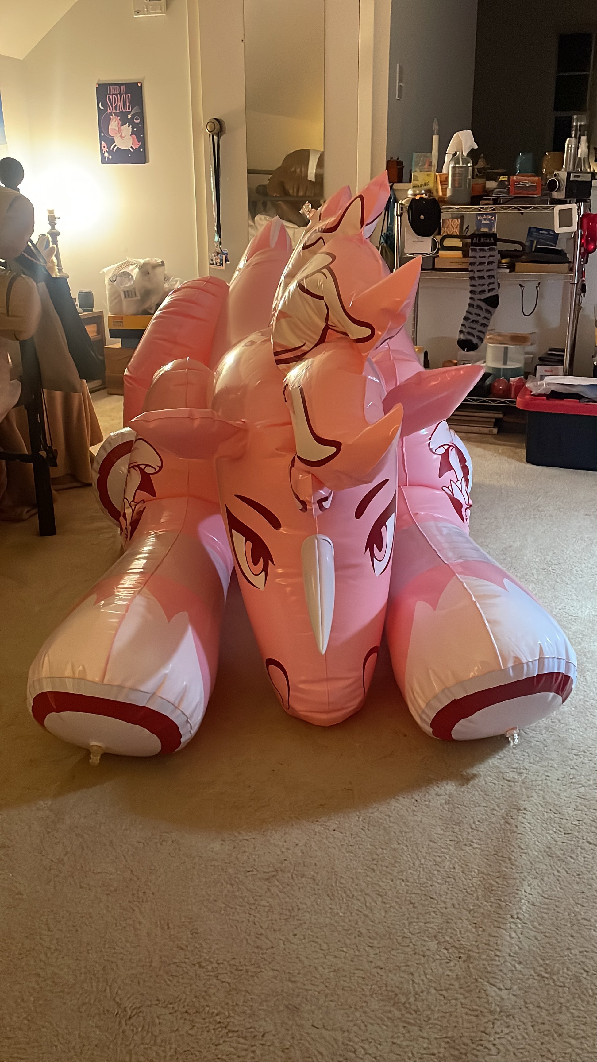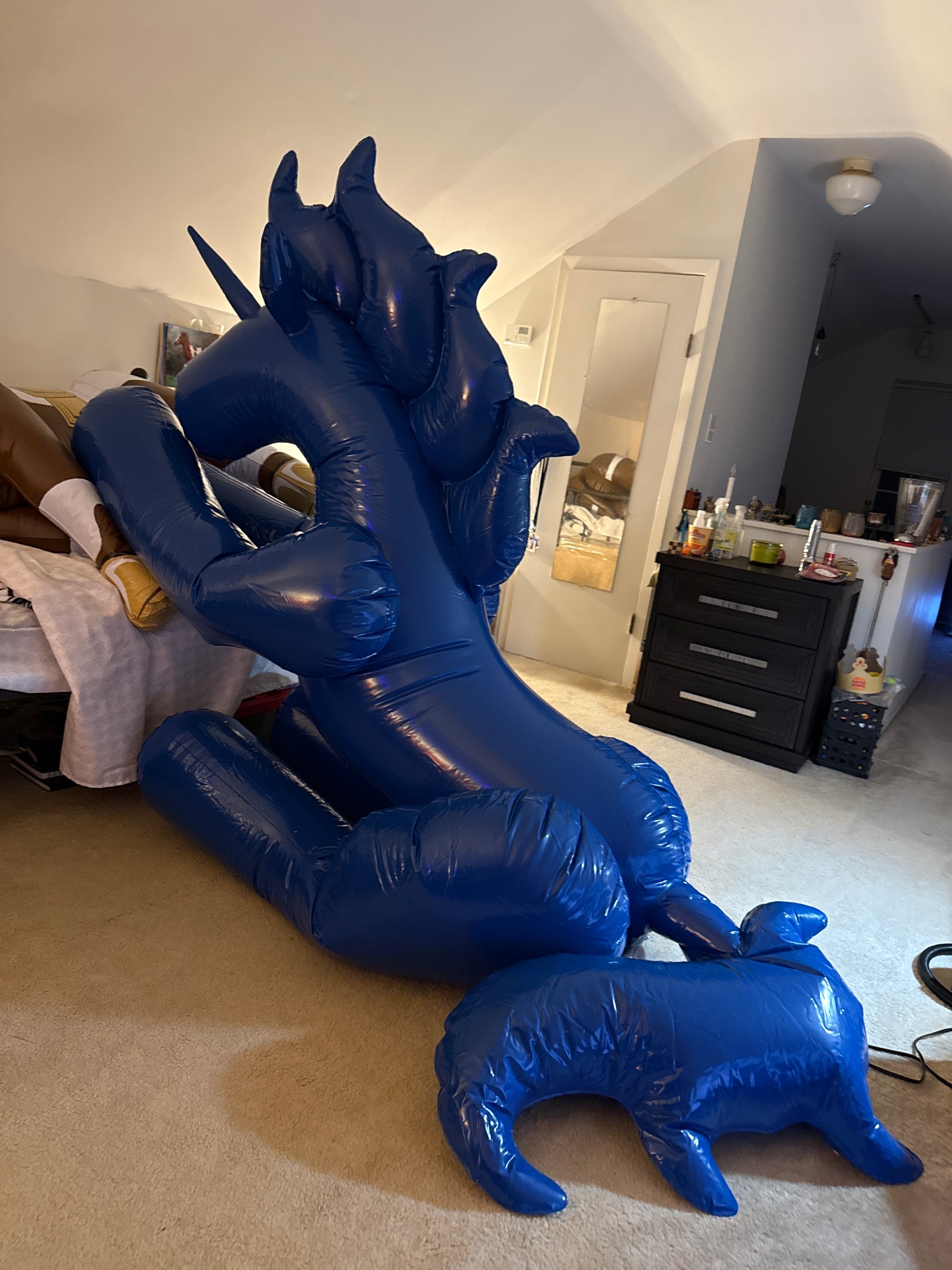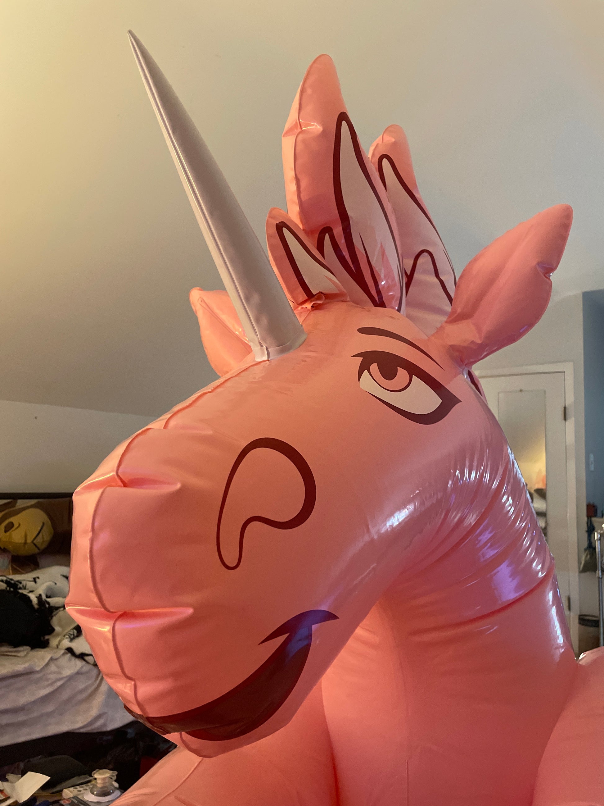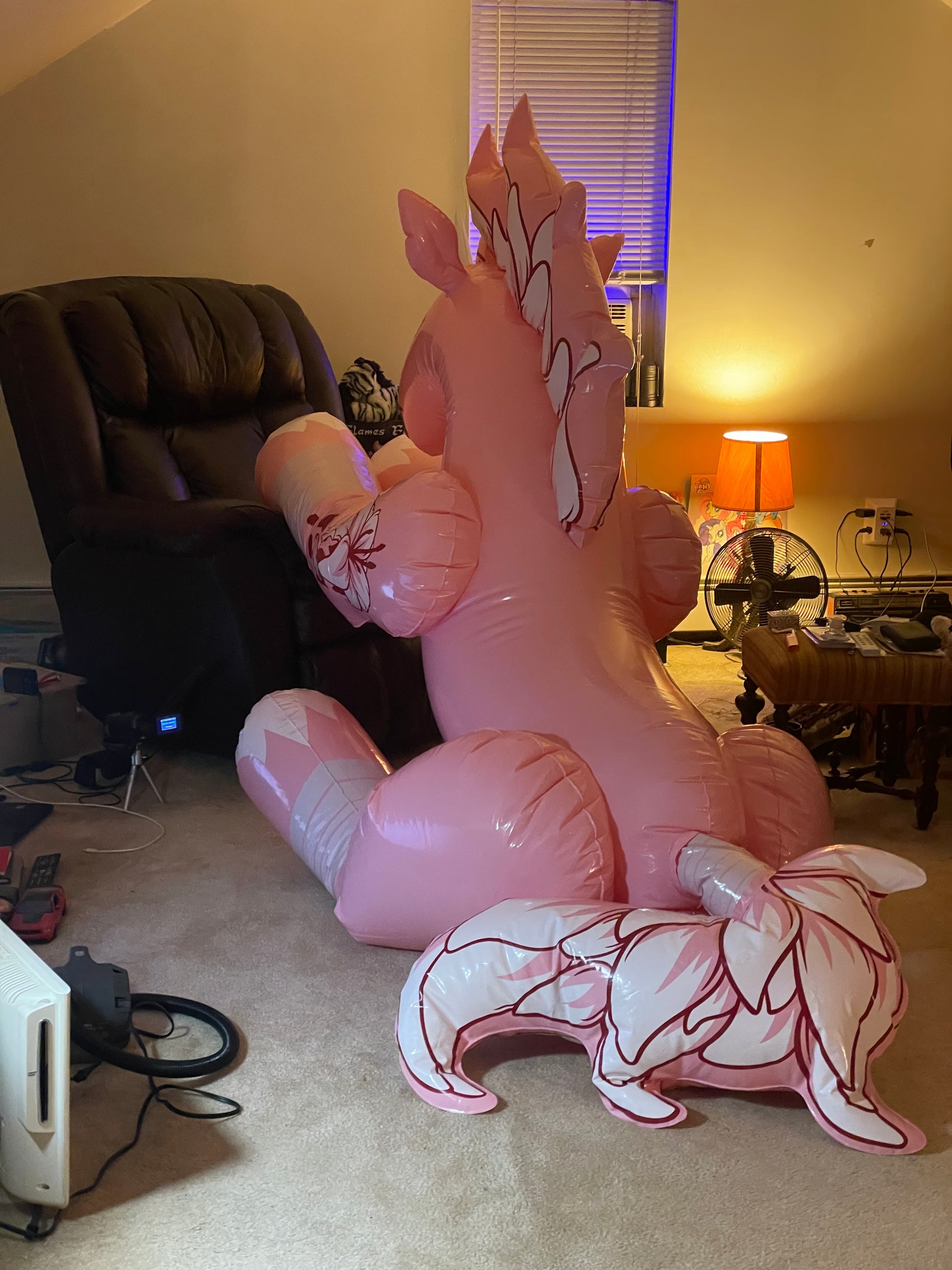 Bad ass gothic inflatable unicorn “Das Einhorn” in secret blue. Material is custom soft shiny. There have been improvements made to the horn and internal sph material. It provides a light gentile feeling while also remaining tight. The blue/exterior material is slightly thicker and provides the feeling of a special custom one off toy experience.