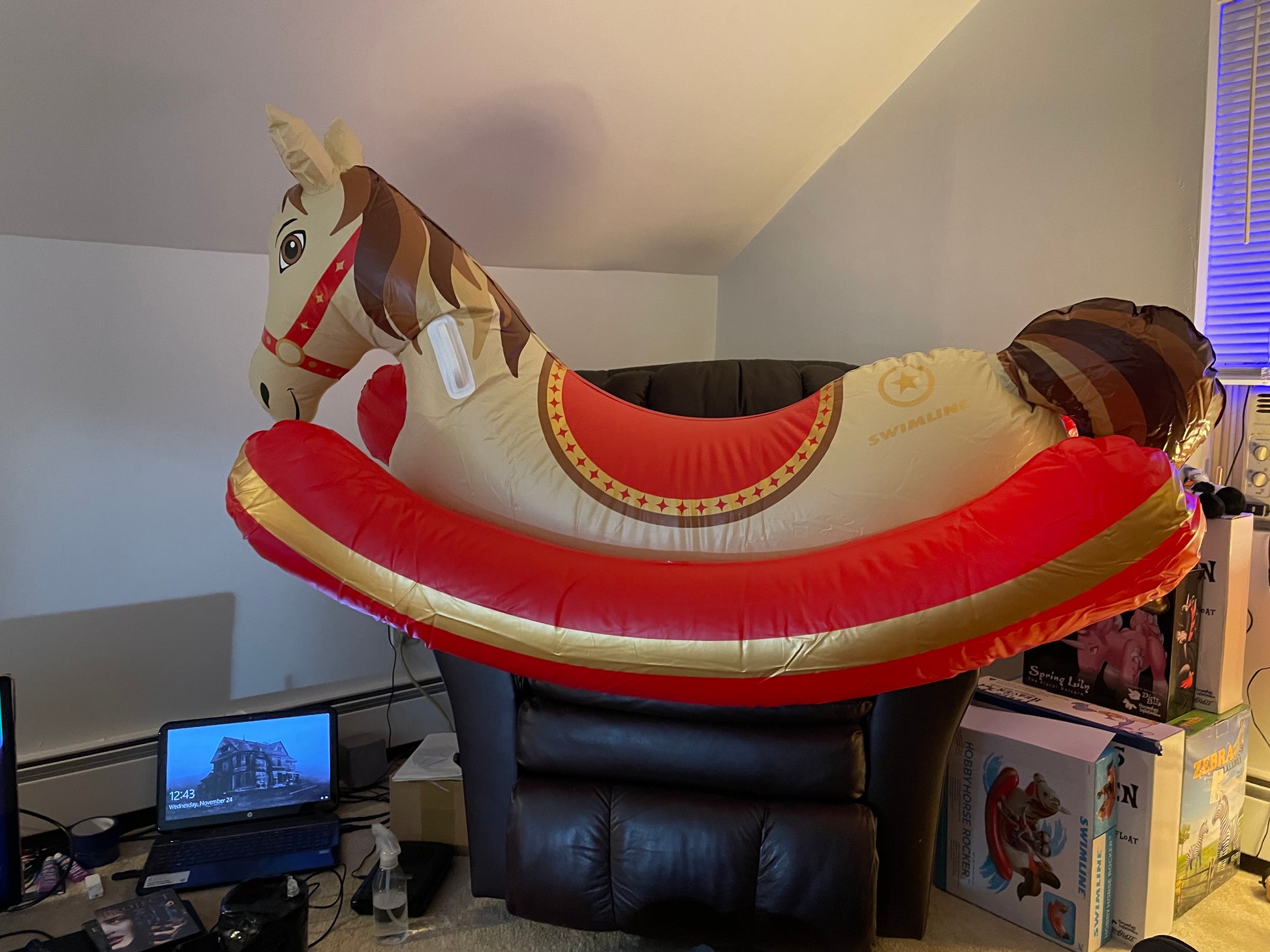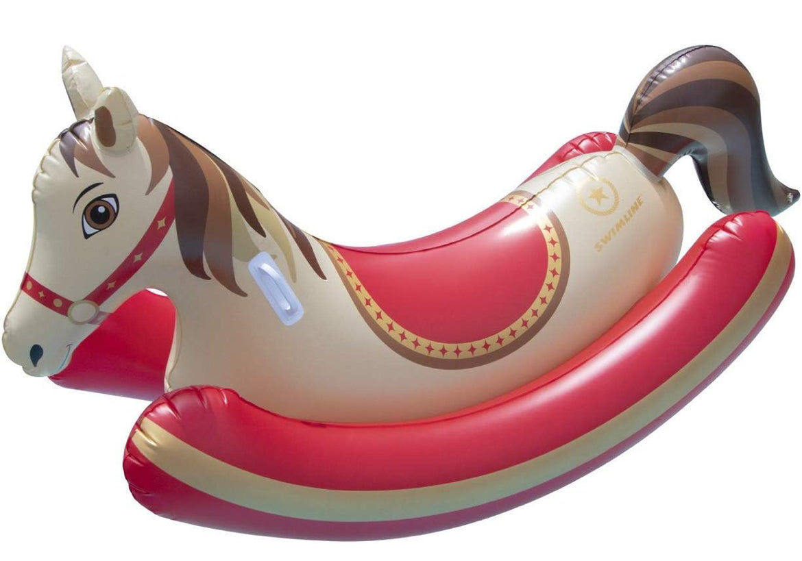 Made of durable raft like material. (pvc) with a textured exterior. Slightly thicker than normal and definitely able to be used as a rocker or its intended purpose with a weight of up to about 300 pounds.